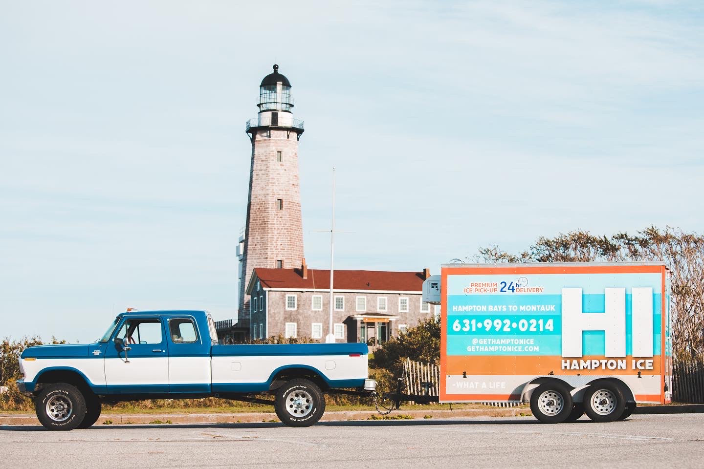 Equipped with outlet or generator carrying 2.5 tons of full-size, cloud free, crystal-clear ice cubes.
